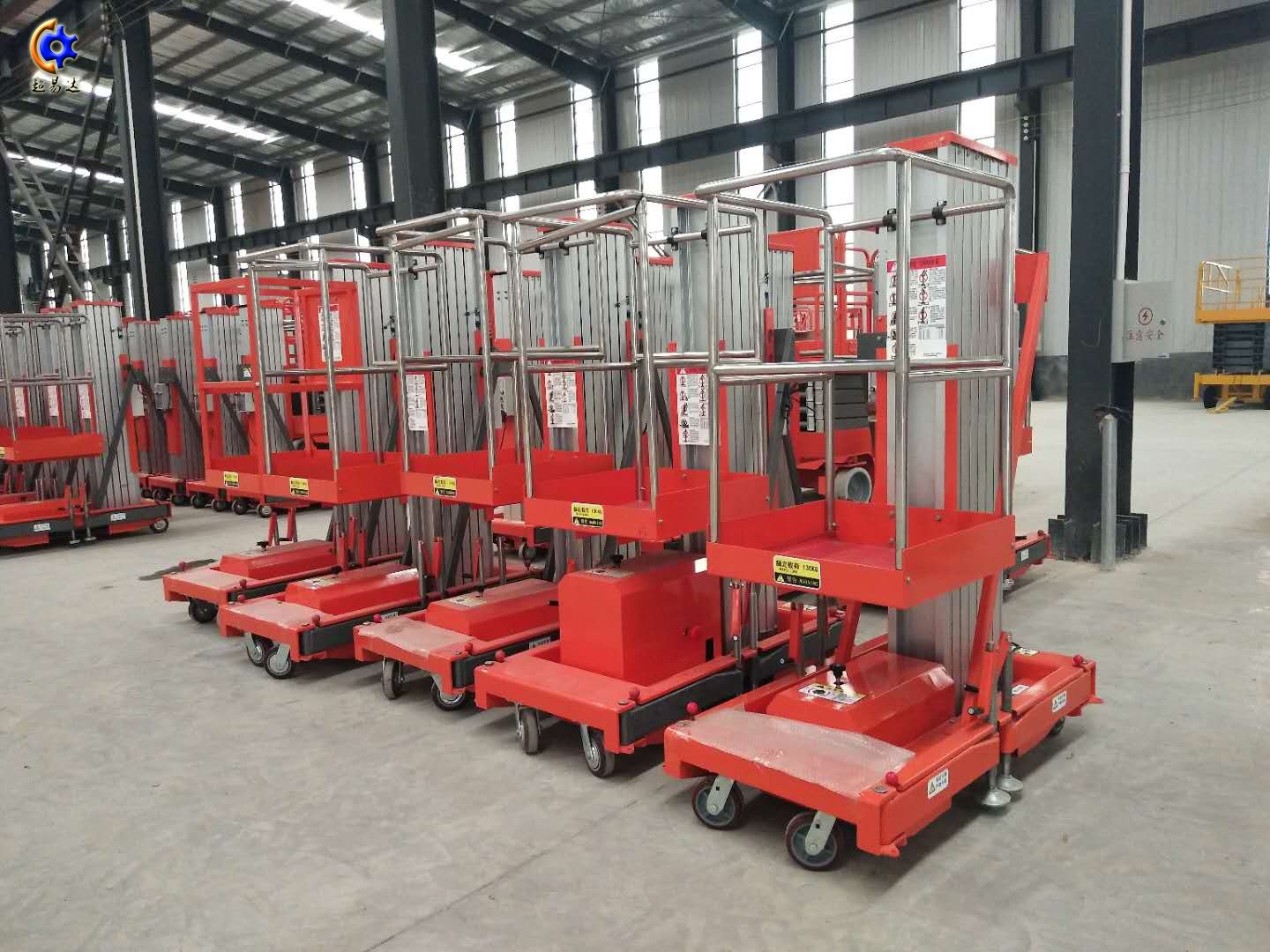 超易達(dá)為你綜述詳細(xì)介紹各種立柱鋁合金升降機(jī)特點及不同用途。各種立柱鋁合金升降機(jī),整體采用高強(qiáng)度鋁型材精制而成由于型材強(qiáng)度高,具有造型美觀、體積小、重量輕、結(jié)構(gòu)緊湊、移動方便、升降平臺平穩(wěn)、操作方便、安全可靠等優(yōu)點,令高空作業(yè)更方便快捷,能夠快速、慢速行走,可調(diào)速,是現(xiàn)代企業(yè)高效安全生產(chǎn)之理想高空作業(yè)設(shè)備。主要產(chǎn)品分為單立柱鋁合金,雙立柱鋁合金,三立柱鋁合金、四立柱鋁合金。
