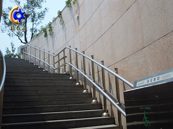 彎軌斜掛式輪椅升降平臺(tái)主要由升降平臺(tái),導(dǎo)軌和驅(qū)動(dòng)部分三大主體組成。升降平臺(tái)是承載輪椅的主體部件,它又分支撐體和平臺(tái)體兩大塊;支撐體依附于不銹鋼導(dǎo)軌上,可沿導(dǎo)軌做上下、轉(zhuǎn)彎及螺旋形運(yùn)轉(zhuǎn);平臺(tái)體表面采用防滑材料制成,外圍三側(cè)裝有安全防護(hù)板,在其不用時(shí)可以向上折疊,減小整體平臺(tái)在樓道上占用空間。該平臺(tái)主要用于載送乘坐輪椅車(chē)的殘障人員上下樓梯使用,適合于地鐵出入口、地下人行通道、體育館、展覽館、醫(yī)院、老年康復(fù)中心、民政辦事處,酒店、飛機(jī)場(chǎng)、圖書(shū)館等眾多公共場(chǎng)所使用