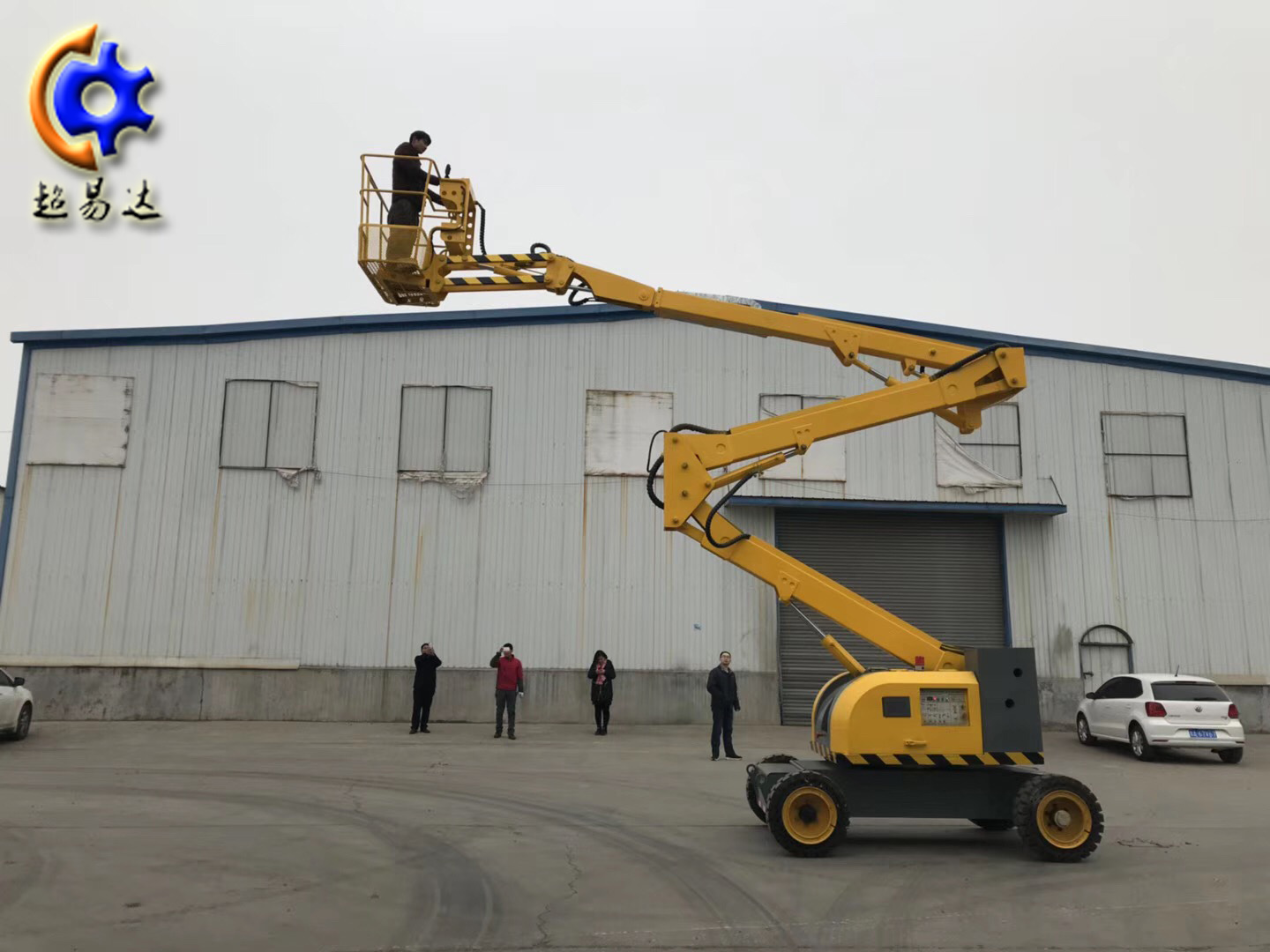 自行曲(折)臂式升降機(jī)升高時(shí)候是曲折狀態(tài)的,升降平臺(tái)的結(jié)構(gòu)采用了機(jī)電液一體化、可靠性設(shè)計(jì)和計(jì)算機(jī)輔助設(shè)計(jì)等技術(shù),是一種全液壓驅(qū)動(dòng)、自行式專用底盤(pán)。突破了以往國(guó)內(nèi)高空作業(yè)升降機(jī)只能采用汽車(chē)或起重機(jī)底盤(pán)改裝設(shè)計(jì)的限制。