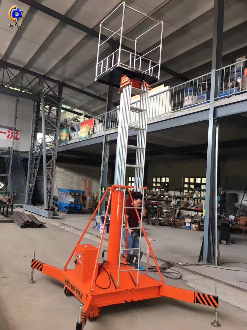 ?產(chǎn)品簡(jiǎn)介:GTTY-A單梯套缸式液壓升降機(jī)是一種多用途的單作用伸縮式套簡(jiǎn)油缸組成的垂直升降機(jī)械。該升降平臺(tái)具有操作簡(jiǎn)便、升降平穩(wěn)、結(jié)構(gòu)緊湊、晃動(dòng)小、重量輕、移動(dòng)方便等優(yōu)點(diǎn)。由于升降平臺(tái)缸筒材料采用的是炮管使用的高強(qiáng)度無(wú)縫鋼管,再加上經(jīng)過(guò)好幾道加工工藝的精心修整,使得缸筒的光潔度和垂直度更加精確,從而保證了產(chǎn)品質(zhì)量的穩(wěn)定性和長(zhǎng)久性。另外還設(shè)有油管爆裂、超載保護(hù)、應(yīng)急下降等裝置。是登高作業(yè)最安全,最經(jīng)濟(jì)實(shí)用的機(jī)具。